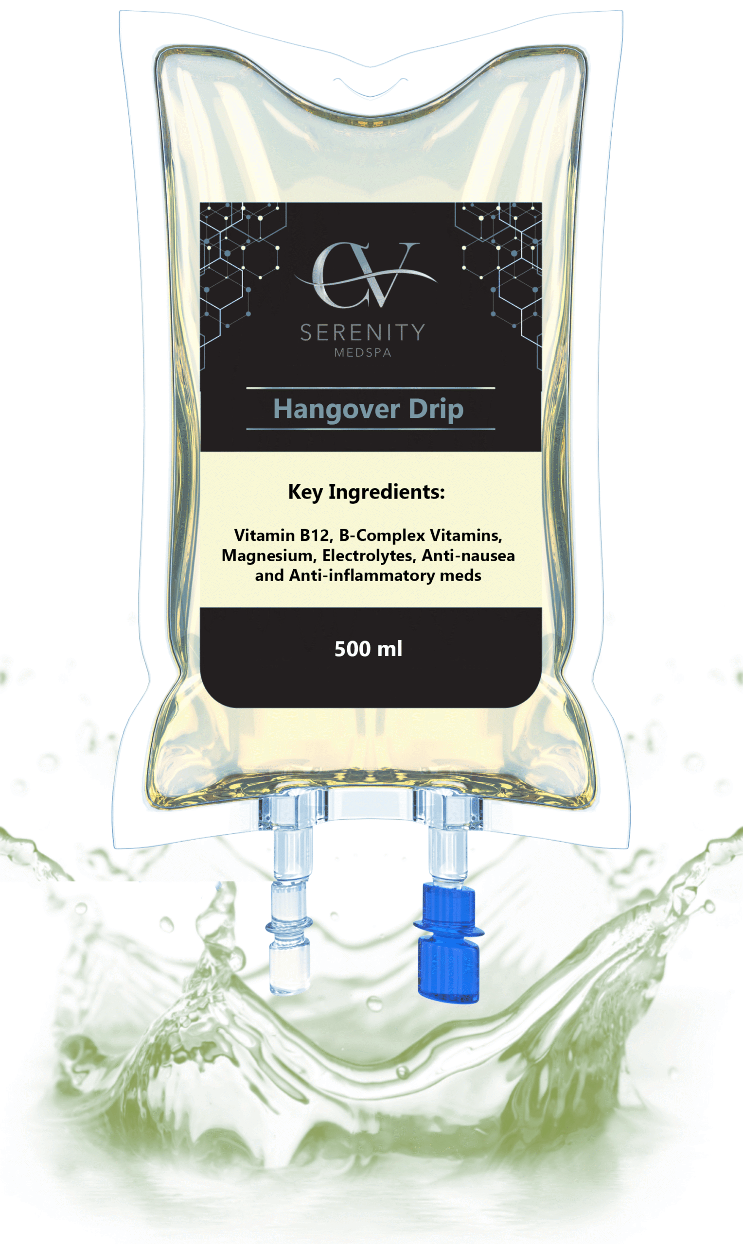 Key Ingredients: Vitamin B12, B-Complex Vitamins, Magnesium, Electrolytes, Anti-nausea and Anti-inflammatory meds (optional)